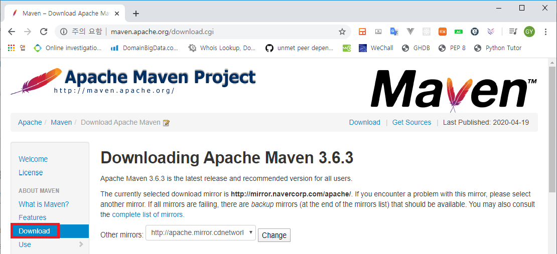 1. Maven 공식 사이트에 접속 (http://maven.apache.org/)