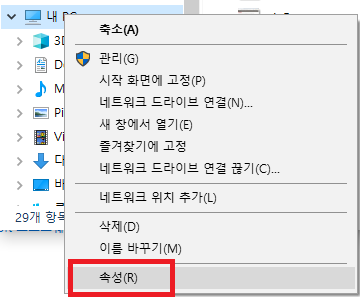 5. 파일 탐색기에서 내 PC 마우스 우클릭 - 속성(R)