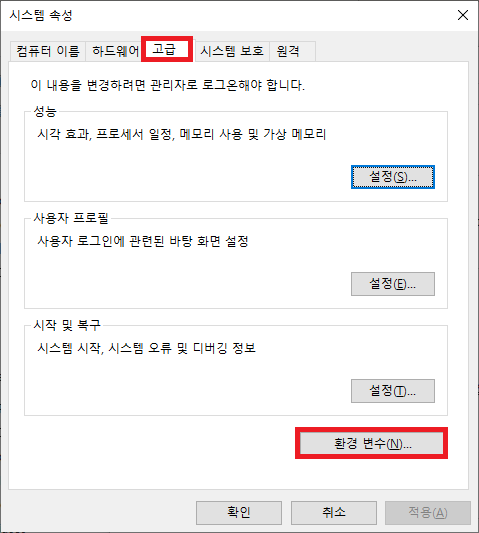 10. 시스템 변수의 Path를 선택 후 편집(I) 을 클릭하거나, Path가 존재하지 않는 경우 새로 만들기(W) 클릭
