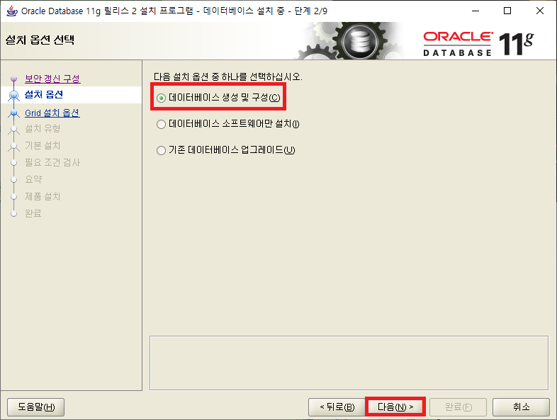 10. 데이터베이스 생성 및 구성(C) 선택 후 다음(N) 클릭