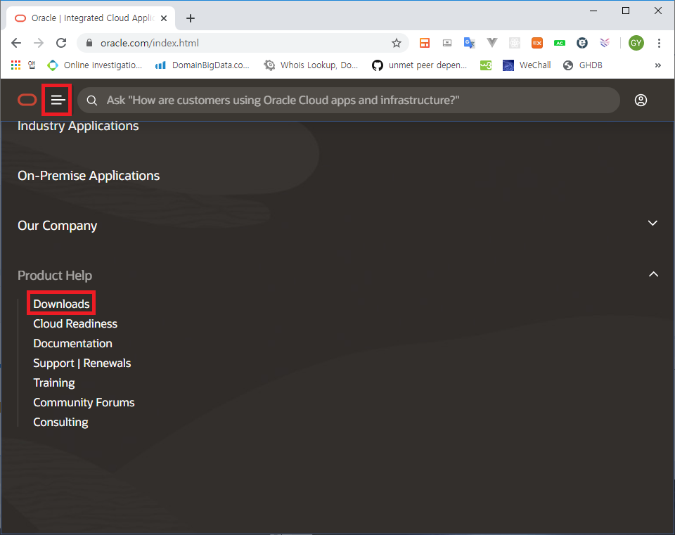 1. Oracle 공식 사이트에 접속 (https://www.oracle.com/)