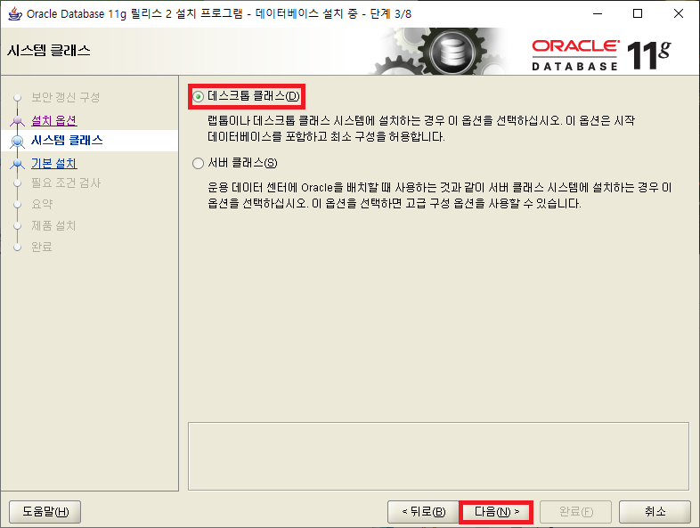 11. 데스크톱 클래스(D) 선택 후 다음(N) 클릭