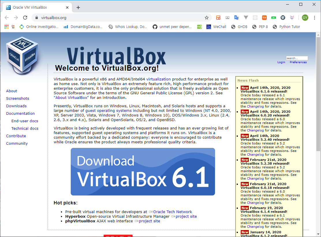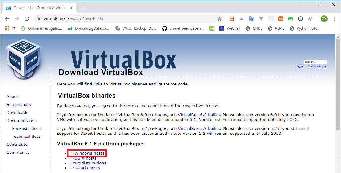 1. VirtualBox 공식 사이트에 접속 (https://www.virtualbox.org/)