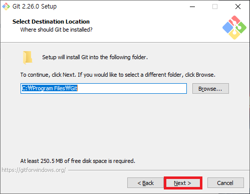 5. Next 클릭 (설치경로 변경을 원한다면 Browse를 클릭하여 변경 후 Next 클릭)