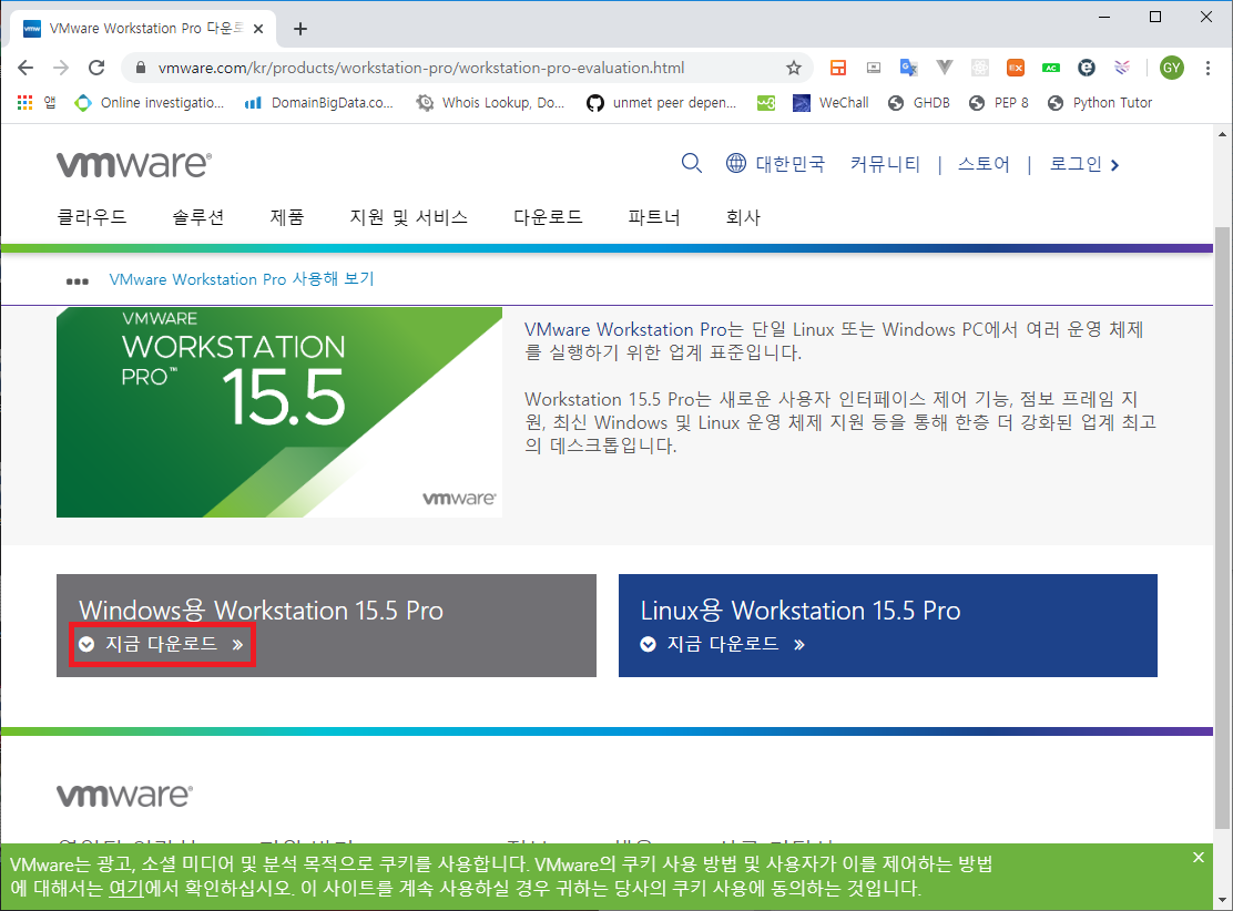1. VMware 공식 사이트에 접속 (https://www.vmware.com/)