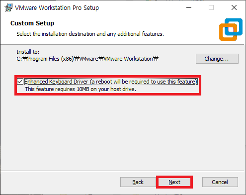 6. Enhanced Keyboard Driver 체크 후, Next 클릭